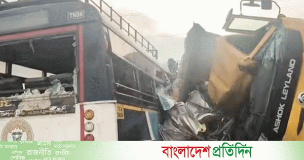 সোমবার (৩ নভেম্বর) সকালে হায়দরাবাদগামী রাজ্য পরিবহন সংস্থার (আরটিসি) একটি যাত্রীবাহী বাসের সঙ্গে বিপরীত দিক থেকে আসা পাথরবোঝাই ট্রাকের মুখোমুখি সংঘর্ষে এ মর্মান্তিক দুর্ঘটনা ঘটে।