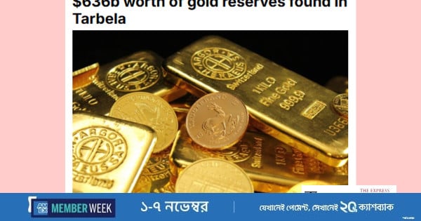 পাকিস্তানের খাইবার পাখতুনখোয়া প্রদেশের তারবেলার মাটির নমুনা পরীক্ষায় প্রায় ৬৩৬ বিলিয়ন মার্কিন ডলার মূল্যের স্বর্ণের মজুদ শনাক্ত হয়েছে বলে দাবি করেছেন দেশটির চেম্বার অব কমার্স অ্যান্ড ইন্ডাস্ট্রির সাবেক সিনিয়র সহ-সভাপতি ও এয়ার করাচির চেয়ারম্যান হানিফ গহর। খবর দ্য এক্সপ্রেস ট্রিবিউনের।