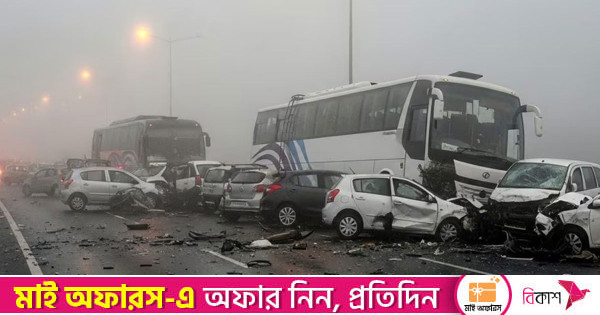রবিবার সকালে হরিয়ানার বিভিন্ন এলাকায় ঘন কুয়াশায় ঢেকে যায় চারপাশ। দৃষ্টিসীমা অত্যন্ত কমে যাওয়ায় প্রথমে একটি গাড়ি দুর্ঘটনার শিকার হয়। এরপর পেছন থেকে আসা যানবাহনগুলো একের পর এক সামনে থাকা গাড়িকে ধাক্কা দিতে থাকে। এতে অল্প সময়ের মধ্যেই সেখানে দুর্ঘটনাকবলিত যানবাহনের বড় স্তূপ তৈরি হয়।
