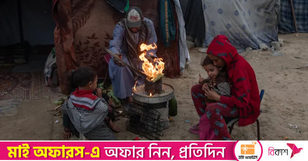 গাজা সিটি থেকে বাস্তুচ্যুত উম্মে মোহাম্মদ আসসালিয়া বলেন, ‘আগুনের পাশে শিশুদের ভেজা কাপড় শুকাতে চেষ্টা করি। তাদের জন্য অতিরিক্ত কাপড় নেই। আমাদের দেওয়া টেন্ট শীত সহ্য করতে পারে না। আমাদের কম্বল দরকার।’