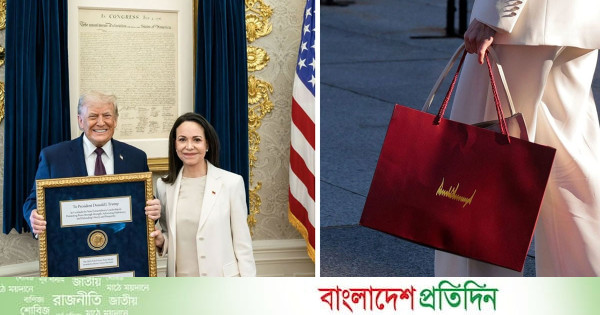 ভেনেজুয়েলার বিরোধী নেতা মারিয়া কোরিনা মাচাদো বৃহস্পতিবার হোয়াইট হাউসে প্রবেশ করেছিলেন এমন একটি উপহার নিয়ে যা ছিল মার্কিন প্রেসিডেন্ট ট্রাম্পের দীর্ঘদিনের আকাঙ্ক্ষা। অর্থাৎ নোবেল শান্তি পুরস্কার। গণতন্ত্র জোরদারের ক্যাম্পেইনের জন্য গত বছর পাওয়া সেই পদকটি তিনি ট্রাম্পকে উপহার দেন। তবে এই প্রতীকী উপহারও ট্রাম্পের রাজনৈতিক সমর্থন আদায়ে কার্যকর হয়নি।