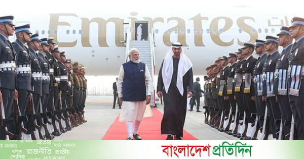 ভারত সফরে এসেছিলেন সংযুক্ত আরব আমিরাতের প্রেসিডেন্ট শেখ মোহম্মদ বিন জায়েদ আল নাহিয়ান। সোমবার (১৯ জানুয়ারি) নয়াদিল্লিতে আমিরাতের প্রেসিডেন্টকে ভারতের ঐতিহ্যবাহী ও সাংস্কৃতিক রীতি অনুযায়ী শুভেচ্ছা জানিয়েছেন নরেন্দ্র মোদি।