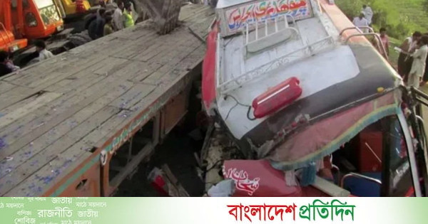পাকিস্তানের সিন্ধু প্রদেশের খাইরপুর জেলার টান্ডো মাস্তি এলাকায় জাতীয় মহাসড়কে একটি যাত্রীবাহী কোচের সঙ্গে ভারী কংক্রিট গার্ডার বহনকারী ট্রেইলারের সংঘর্ষের ঘটনা ঘটেছে। রবিবার (১৫ ফেব্রুয়ারি) ভোরে ঘটা এ দুর্ঘটনায় অন্তত ১১ জন নিহত হয়েছেন।