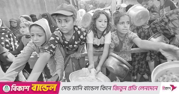 খাবার সংগ্রহ করছে ফিলিস্তিনি শিশুরা