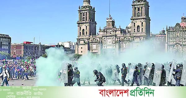 গত শনিবার মেক্সিকোজুড়ে হাজারো মানুষ জেন-জি ব্যানারে বিক্ষোভ করেন। প্রত্যক্ষদর্শীরা বলেন, মেক্সিকো সিটিতে একদল বিক্ষোভকারী প্রেসিডেন্ট ক্লদিয়া শেনবাউমের বাসভবন ন্যাশনাল প্যালেস ঘিরে থাকা ব্যারিকেড ভেঙে ফেলেন। এ সময় দাঙ্গা পুলিশ কাঁদানে গ্যাস ছোড়ে। এর জেরে দাঙ্গা পুলিশের সঙ্গে বিক্ষোভকারীদের সংঘর্ষ বাধে।