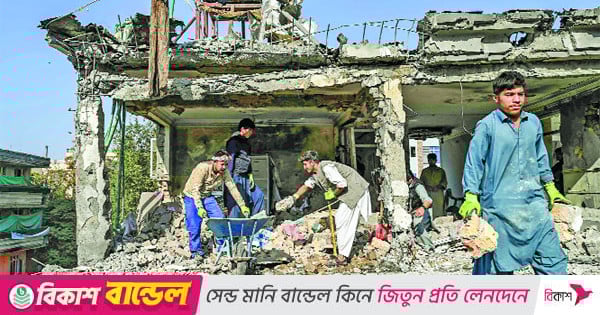 পাকিস্তানের হামলায় ক্ষতিগ্রস্ত বাড়ির ধ্বংসাবশেষ অপসারণ