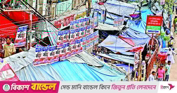 অস্থায়ী দোকানি ও ভ্রাম্যমাণ ব্যবসায়ীদের দখলে ফুটপাত