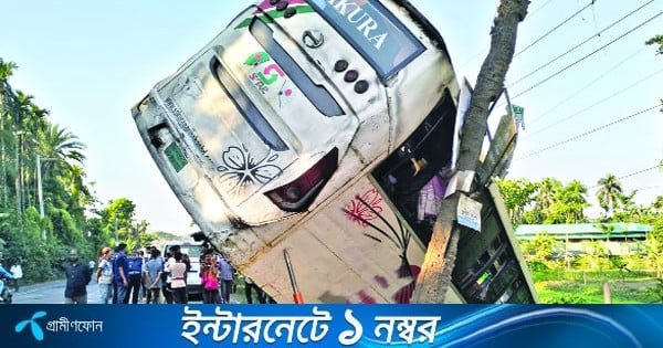 খাদে পড়ে আছে সাকুরা পরিবহন