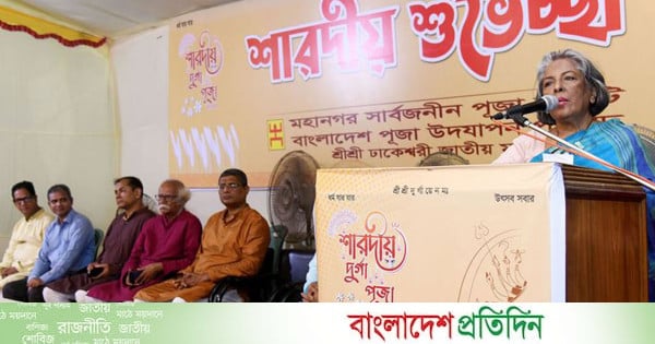এসময় প্রাথমিক ও গণশিক্ষা মন্ত্রণালয়ের উপদেষ্টা অধ্যাপক ডা. বিধান রঞ্জন রায় পোদ্দারও বলেন, শারদীয় দুর্গাপূজা শুধু ধর্মীয় উৎসব নয়, এটি সমাজে সম্প্রীতি ও সৌহার্দ্যের প্রতীক। সকল নাগরিকদের একসঙ্গে বসবাস ও উন্নয়নের পথে এগিয়ে যাওয়ার অঙ্গীকার পুনর্ব্যক্ত করেন তিনি।