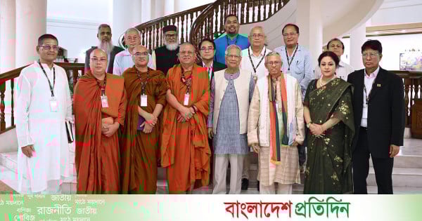 প্রবারণা পূর্ণিমা উপলক্ষে প্রধান উপদেষ্টা প্রফেসর মুহাম্মদ ইউনূসের সঙ্গে শুভেচ্ছা বিনিময় করেছেন বৌদ্ধ ধর্মীয় নেতৃবৃন্দের প্রতিনিধিদল।