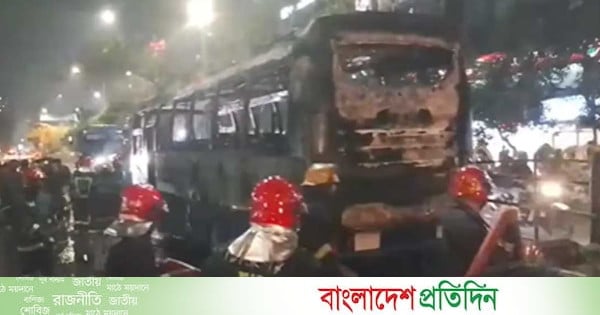 রাজধানীতে বাসে আগুন