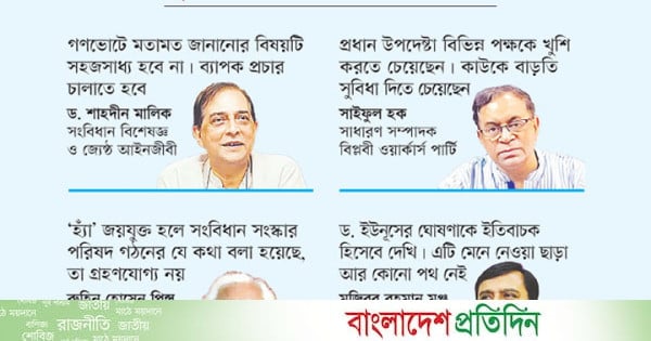 সংবিধান বিশেষজ্ঞ ও সুপ্রিম কোর্টের জ্যেষ্ঠ আইনজীবী ড. শাহদীন মালিক মনে করেন, জাতীয় জুলাই সনদ বাস্তবায়ন আদেশে যেভাবে যেসব প্রস্তাবে গণভোটের আয়োজনের কথা বলা হয়েছে তার জন্য ব্যাপক প্রচার চালাতে হবে।