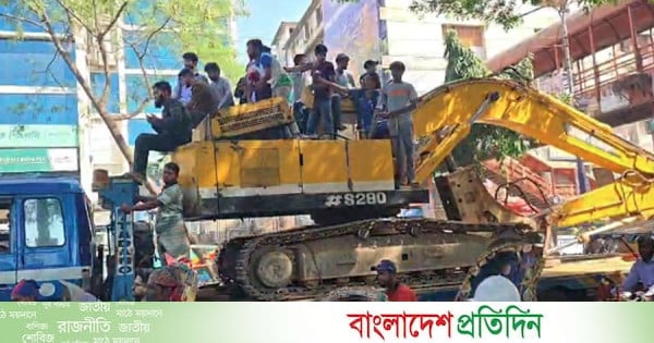 ধানমন্ডি ৩২ নম্বরে নেওয়া হচ্ছে বুলডোজার। আজ বেলা ১২টার দিকে ট্রাকে করে বুলডোজার দুটি নেওয়া হয় ধানমন্ডি ৩২ নম্বরে। এ সময় বুলডোজারের ওপর কয়েকজনকে স্লোগান দিতে দেখা যায়।