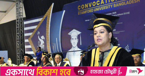 শনিবার রাজধানীর বসুন্ধরা আন্তর্জাতিক কনভেনশন সেন্টারের এক্সপো ভিলেজে স্টামফোর্ড ইউনিভার্সিটি বাংলাদেশ আয়োজিত সমাবর্তন ২০২৫-এ বক্তব্যকালে তিনি এ কথা বলেন।