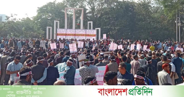 নবম জাতীয় বেতন কমিশনের প্রতিবেদনের আলোকে ৯ম পে-স্কেলের গেজেট প্রকাশ ও বাস্তবায়নের এক দফা দাবিতে সমাবেশ করেছেন সরকারি কর্মচারীরা।