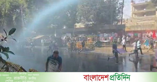 নবম পে-স্কেলের গেজেট জারির দাবিতে যমুনা অভিমুখে মিছিলে অংশ নেয়া আন্দোলনকারীদের ওপর জলকামান নিক্ষেপ করেছে পুলিশ।