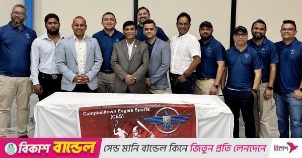 প্রবাসী খেলাধুলাপ্রেমীদের অংশগ্রহণে সিডনিতে ক্যাম্পবেলটাউন ঈগলস স্পোর্টস (সিইএস) আয়োজিত গালা নাইট ও পুরস্কার প্রদান অনুষ্ঠান অনুষ্ঠিত হয়েছে। বৃহস্পতিবার সন্ধ্যা ৬টা ৩০ মিনিটে মিন্টোর ‘জমিদার বাড়ি রেস্টুরেন্টে’ আয়োজিত অনুষ্ঠানে ছিল খেলাধুলার সাফল্য উদযাপন, পুরস্কার বিতরণ, ডিনার ও কমিউনিটি নেটওয়ার্কিং। অনুষ্ঠানের উদ্বোধন করেন ক্লাবের সহ-সভাপতি মো. শফিকুল ইসলাম। ক্লাবের সভাপতি মোহাম্মদ রেজাউল ইসলাম মজুমদার (পুলক) ও সহ-সভাপতি শফিক বিজয়ীদের পুরস্কার প্রদান করেন। সহযোগিতা করেন পরিচালক ফাহিম হাসেম ও কোষাধ্যক্ষ মঈন আহমেদ। পরে অনুষ্ঠানে যোগ দেন ক্যাম্পবেলটাউন সিটি কাউন্সিলর মাসুদ চৌধুরী, কাউন্সিলর আশিকুর রহমান এশ, সাবেক জাতীয় ক্রিকেটার ও ক্লাব অ্যাম্বাসেডর ইমরুল কায়েস, অভিনেতা মাজনুন মিজান, সাংবাদিক নাইম আবদুল্লাহ প্রমুখ। ক্লাবের সাধারণ সম্পাদক মেহেদী খান ক্লাবের লক্ষ্য, অর্জন ও ভবিষ্যৎ পরিকল্পনা তুলে ধরেন এবং স্পন্সর সাদিক করিম (রেইন অ্যান্ড হর্ন বর্ডিয়া)-এর প্রতি কৃতজ্ঞতা জানান। পুরস্কারপ্রাপ্তরা হলেন— Badminton Cup Champion: Bade Miya Chote Miya (হামজা ও শাদিক), Runner-Up: Goosebumps (শফিউল ও তানভীর) Badminton Plate Champion: TNT (তাহমিদ ও তাওহিদ), Runner-Up: Shuttle Stallions (কবীর ও কনক), Cricket Champion: Eagles Red Runner-Up: Eagles Blue। ট্রফি প্রদান করেন কমিউনিটি নেতৃবৃন্দ ও ইমরুল কায়েস। বক্তারা ক্যাম্পবেলটাউন ঈগলস স্পোর্টসের সামাজিক ভূমিকা ও খেলাধুলার প্রসারে অবদানের প্রশংসা করেন।