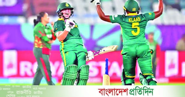 ইংল্যান্ডের মতো দক্ষিণ আফ্রিকাকেও বাগে পেয়ে হারাতে পারল না বাংলাদেশ। একাধিক ক্যাচ ও রান আউট হাতছাড়া করার খেসারত দিতে হয়েছে টাইগ্রেসদের। স্বর্ণা আক্তারের হাফ-সেঞ্চুরিতে ২৩২ রানের পর মাত্র ৭৮ রানের মধ্যে প্রোটিয়াদের ৫ উইকেট নিয়ে জয়ের সম্ভাবনা জাগিয়েও ৩ উইকেটে হারতে হয়েছে নিগার বাহিনীকে। রোমাঞ্চকর ম্যাচে তিন বল বাকি থাকতে লক্ষ্যে পৌঁছে যায় প্রোটিয়া মেয়েরা। ৭৮ রানের ৫ উইকেট হারিয়ে রীতিমতো ধুঁকছিল দক্ষিণ আফ্রিকা। কিন্তু এর পর এই চাপ আর ধরে রাখতে পারেনি টাইগ্রেস বোলাররা। ষষ্ঠ উইকেটে মারিজান ক্যাপ ও ক্লোয়ি ট্রায়নের ৮৫ রানের জুটিতে ম্যাচ বের করে নেয় প্রোটিয়ারা। পরে দুটি ত্রিশোর্ধ জুটিতে লক্ষ্যে পৌঁছে যায় তারা। শেষের দিকে একাধিক ক্যাচ ও রান আউট মিস করেছে নিগার বাহিনী।