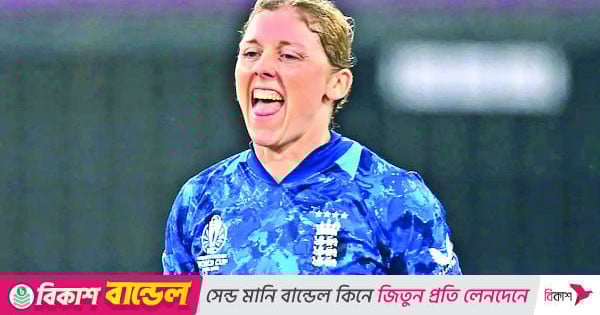 আইসিসি নারী ওয়ানডে বিশ্বকাপে হিদার নাইটের সেঞ্চুরিতে ভারকে ৪ রানে হারাল ইংল্যান্ড। স্মৃতি মান্দানা, হারমানপ্রীত ও দীপ্তির হাফ সেঞ্চুরিতেও পারল না ভারত। তাতেই সেমিফাইনাল নিশ্চিত করল ইংলিশ মেয়েরা। গতকাল ইংল্যান্ডের ২৮৮ রানের জবাবে ২৮৪ রানে থেমে যায় ভারত। ভারতের হয়ে স্মৃতি ৮৮, হারমানপ্রীত ৭০ ও দীপ্তি ৫০ রান করেন। এদিন আন্তর্জাতিক ক্রিকেটের ৩০০তম ম্যাচে তৃতীয় ওয়ানডে সেঞ্চুরির দেখা পান ইংল্যান্ডের বিশ্বকাপজয়ী অধিনায়ক নাইট। ৯১ বলে ১৫ চার ও ১ ছক্কায় করেন ১০৯ রান। চার বছরের বেশি সময় পর পেলেন তৃতীয় সেঞ্চুরি। আগের দুটি ২০১৭ বিশ্বকাপে পাকিস্তানের বিপক্ষে ১০৬ এবং ২০২১ সালের সেপ্টেম্বরে নিউজিল্যান্ডের বিপক্ষে ১০১ রান।