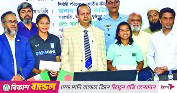 নারী ফুটবল ও অনূর্ধ্ব-১৮ নারী হকি দলকে ৭১ লাখ টাকা বুঝিয়ে দিয়েছে জাতীয় ক্রীড়া পরিষদ। নারী ফুটবল দল প্রথমবারের মতো এশিয়ান কাপ চূড়ান্ত পর্বে খেলার যোগ্যতা অর্জন করে। অন্যদিকে অনূর্ধ্ব-১৮ নারী দল এশিয়া কাপে প্রথম অংশ নিয়ে তামার পদক জিতেছিল। গতকালই দুই দলের খেলোয়াড়দের হাতে পুরস্কর তুলে দেওয়া হয়। নারী ফুটবল দল পেয়েছে ৫০ লাখ টাকা। নারী হকি দল ২১ লাখ টাকা। নারী ফুটবলাররা প্রতিজন পেয়েছেন ১ লাখ ৬১ হাজার টাকা করে। অন্যদিকে হকি দলের খেলোয়াড়রা ৯৫ হাজার টাকা করে বুঝে পেয়েছেন। আগামী মার্চে অস্ট্রেলিয়ায় এশিয়ান কাপ ফুটবলে চূড়ান্ত পর্বে খেলবে বাংলাদেশ। পুরস্কার পেয়ে খেলোয়াড়রা খুশি।