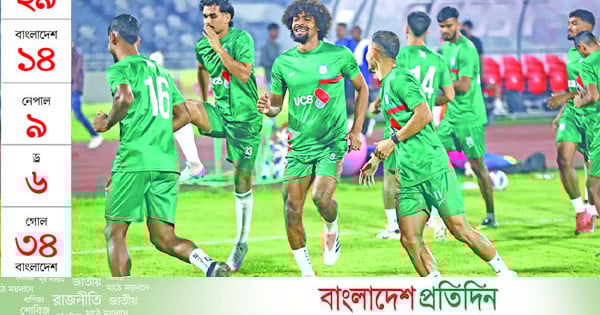 একসময় ফুটবলীয় লড়াইয়ে নেপালের বিপক্ষে বাংলাদেশের জয় ছিল নিয়মিত ঘটনা। তবে ২০২০ সালের পর থেকেই বদলে যায় গতিপথ। সেবার প্রীতি ম্যাচে নেপালকে ২-০ গোলে পরাজিত করে বাংলাদেশ। এরপর থেকে পাঁচ ম্যাচ খেলেও জয়ের দেখা পায়নি লাল-সবুজের জার্সিধারীরা। হেরেছে দুবার। ড্র করেছে তিনবার। গত সেপ্টেম্বরে নেপালের মাটিতে খেলতে গিয়েছিল বাংলাদেশ। দুই ম্যাচ খেলার কথা থাকলেও এক ম্যাচ খেলেই ফিরে আসতে হয় বাংলাদেশকে। সেই ম্যাচে গোলশূন্য ড্র করে বাংলাদেশ-নেপাল। এবার ভারত ম্যাচের আগে প্রস্তুতি ম্যাচে কি নেপালকে হারাতে পারবেন জামাল ভূঁইয়ারা?