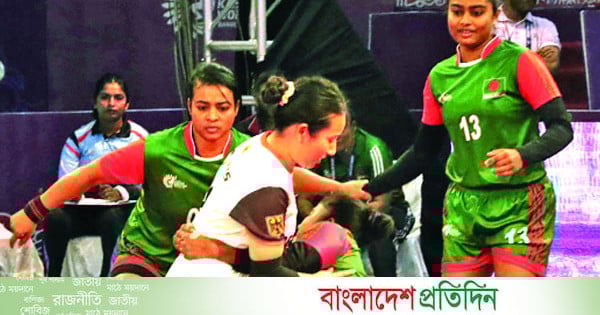 নারী কাবাডি বিশ্বকাপে জার্মানিকে উড়িয়ে দিয়েছে স্বাগতিক বাংলাদেশ। গতকাল মিরপুরের শহীদ সোহরাওয়ার্দী ইনডোর স্টেডিয়ামে জার্মানিকে ৫৭-২৭ পয়েন্টে হারিয়েছেন রূপালী আক্তাররা। ফুটবলে জার্মানির চেয়ে যোজন যোজন দূরে বাংলাদেশ। কাবাডিতে ঠিক তার উল্টো। জাতীয় খেলা কাবাডিতে বিশ্বের পাঁচ নম্বর বাংলাদেশের মেয়েরা। অন্যদিকে কাবাডির প্রথম পাঠ নিচ্ছে জার্মানি। গতকালের খেলায় পার্থক্যটা খোলা চোখেই দেখা গেল। শ্রাবণী মল্লিক, বৃষ্টি বিশ্বাস ও স্মৃতি আক্তাররা শুরু থেকেই প্রতিপক্ষকে আটকে রাখেন। পাশাপাশি রেইড থেকেও পয়েন্ট সংগ্রহ করতে থাকে বাংলাদেশ। মাত্র পাঁচ মিনিটেই জার্মানদের প্রথমবার অলআউট করে স্বাগতিকরা। তখন রূপালী আক্তারের দল এগিয়ে যায় ১০-০ পয়েন্টে। ২০২৩ সালে কাবাডি শুরু করা জার্মান মেয়েরা অবশ্য ঘুরে দাঁড়িয়ে বাংলাদেশকে চ্যালেঞ্জ ছুড়ে দেয়। প্রথমার্ধ্বে বাংলাদেশ ২৮-৯ পয়েন্টে এগিয়ে থাকলেও দ্বিতীয়ার্ধ্বে বেশ কিছু পয়েন্ট সংগ্রহ করে নেয় জার্মান মেয়েরা। এ সময় বাংলাদেশ নিজেদের স্বাভাবিক খেলা খেলতে পারেনি। জার্মানির মেয়েরা দ্বিতীয়ার্ধ্বে ১৮ পয়েন্ট সংগ্রহ করে। অবশ্য ম্যাচের ছয় মিনিট বাকি থাকতে জার্মানিকে তৃতীয়বার অলআউট করে বাংলাদেশ। তখন স্কোর ছিল ৪৩-২১। শেষপর্যন্ত বাংলাদেশ ম্যাচ শেষ করে ৫৭-২৭ ব্যবধানে। এর মধ্যে জার্মানদের আরও একবার অলআউট করেছে বাংলাদেশের মেয়েরা। নারী কাবাডি বিশ্বকাপে নিজেদের প্রথম ম্যাচে গত সোমবার উগান্ডাকেও বড় ব্যবধানে পরাজিত করে বাংলাদেশ। টানা দুই জয়ে সেমিফাইনালের পথে এগিয়ে গেলেন রূপালীরা।