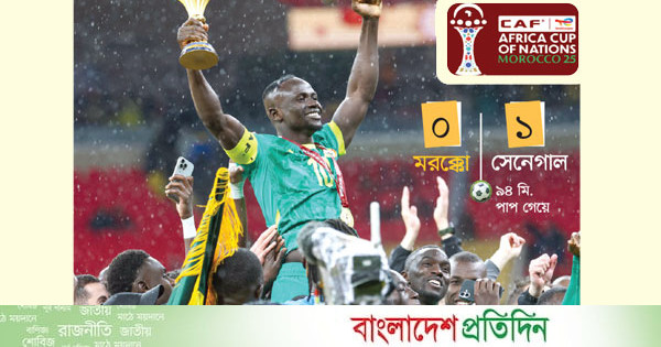 সেনেগালের চারণভূমিতে পশ্চিম আফ্রিকান সিংহ টিকে আছে গোটা বিশেক। ৩ হাজার কিলোমিটার দূরে রাবাতের মাঠে হলুদ-সবুজ জার্সিতে একেকজন সিংহ হয়ে দাঁড়ালেন। স্টেডিয়াম, পরিবেশ, ভাগ্য-সবকিছুর সঙ্গে লড়াইয়ে জয়ী সেনেগালিজরা। ‘তেরেঙ্গা লায়ন্সরা’। শেষ বাঁশি বেজেছে। মরক্কোন সমর্থকদের চোখের পানি ঝরছে আকাশ বেয়ে। সেনেগাল জিতে গেছে। সাদিও মানে জিতেছেন। ফুটবল জিতেছে। জিতেছে আফ্রিকাই! মানের শেষ আসরকে রাঙিছেন সতীর্থরা। স্বাগতিক মরক্কোর বিপক্ষে ১-০ গোলের জয়ে দ্বিতীয়বারের মতো আফ্রিকান ফুটবলের শ্রেষ্ঠত্বের মুকুট পরল সেনেগাল। প্রথমবার জিতেছিল ২০২১ সালে। এদিকে এক মাস আগে ফিফা আরব কাপ জিতলেও আফ্রিকা কাপ অব নেশনসের শিরোপার অপেক্ষার পালা আরও দীর্ঘ হলো হাকিমি ও দিয়াজের মরক্কোর।