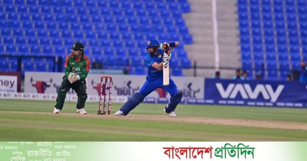টস জিতে আগে ব্যাটিংয়ে নেমে দুই ওপেনার ইব্রাহিম জাদরান ও রহমানুল্লাহ গুরবাজের ব্যাটে দারুণ শুরু করে আফগানিস্তান। ৯৯ রানে ভাঙে উদ্বোধনী জুটি। ফিফটির পথে থাকা গুরবাজকে ৪২ রানে আউট করেন তানভির ইসলাম।