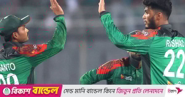 ছোট লক্ষ্য তাড়ায় উড়ন্ত সূচনা করেছিল ওয়েস্ট ইন্ডিজ। উদ্বোধনী জুটিতে ৫১ রান তোলে তারা। তবে রিশাদ হোসেনের ঘূর্ণিতে খুলে যায় তাদের উইকেটের দরজা। ২৭ রান করা আলিক আথানজেকে লেগ বিফোরের ফাঁদে ফেলেন রিশাদ, ভাঙে প্রথম জুটি। সেই থেকেই ম্যাচে ফিরে আসে বাংলাদেশ।