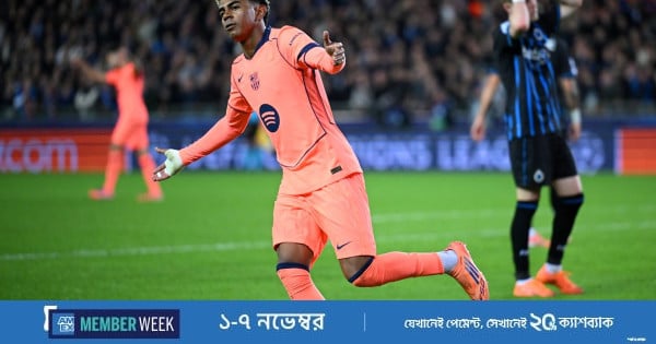 বুধবার রাতে ব্রেয়ডেল স্টেডিয়ামে ৬ মিনিটের মাথায় পিছিয়ে পড়ে বার্সেলোনা। অবশ্য এর দুই মিনিট পরেই বার্সাকে সমতায় ফেরান তোরেস। এরপর ১৭তম মিনিটে এগিয়ে যায় ব্রুগে। এবার গোল করেন ম্যাচের জোড়া গোলদাতা কার্লস ফোর্বস। ৩৮তম মিনিটে সেই গোল পরিশোধ করেন লামিন ইয়ামাল।
