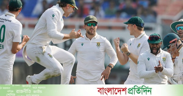 হারমার-মহারাজদের ঘূর্ণিতে ১২৩ রানের লক্ষ্য তাড়ায় মাত্র ৯৩ রানে গুটিয়ে গেছে ভারত। এর মধ্য দিয়ে ভারতের মাটিতে প্রোটিয়াদের টেস্ট জিততে দীর্ঘ ১৫ বছরের অপেক্ষার অবসান হয়েছে। এর আগে ২০১০ সালের ফেব্রুয়ারিতে নাগপুর টেস্টে শেষবার টেস্ট জিতেছিল গ্রায়েম স্মিথের নেতৃত্বাধীন দক্ষিণ আফ্রিকা। এমন দিন দেখতে টেম্বা বাভুমাদের লম্বা সময় অপেক্ষায় থাকতে হলো।