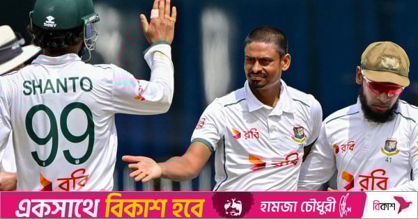 এর আগে মুশফিকুর রহিম শততম টেস্টে খেলতে নেমে ১০৬ রানের ঝলমলে ইনিংস উপহার দেন। ১১তম ক্রিকেটার হিসেবে শততম টেস্টে সেঞ্চুরির কীর্তি গড়েন তিনি। পরে লিটন দাসও খেলেন ১২৮ রানের ইনিংস। এতে ভর করে ৪৭৬ রানে থামে বাংলাদেশের প্রথম ইনিংস।