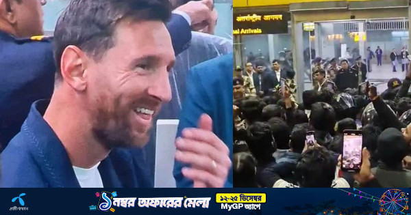 আর্জেন্টিনার মহাতারকা লিওনেল মেসি শুক্রবার দিবাগত রাত আড়াইটার দিকে কলকাতায় পা রাখেন। প্রায় ১৪ বছর পর ভারতে মেসির আগমন। মিয়ামি থেকে দুবাই হয়ে কলকাতায় নামেন তিনি। গভীর রাত হলেও বিমানবন্দরের বাইরে হাজার হাজার ভক্ত ভিড় করেন। বিমানবন্দর থেকে মেসি বের হওয়া মাত্রই সমর্থকদের চিৎকার ও জয়ধ্বনিতে গমগম করছিল বিমানবন্দর চত্বর। ভক্তরা মেসির নাম ধরে স্লোগান দেন। আর্জেন্টিনার পতাকা নাড়েন। কেউ কেউ ব্যারিকেডে উঠে পড়েন। পরিস্থিতি সামাল দিতে পুলিশ কড়া নিরাপত্তা বলয় গড়ে তোলে। মেসির ভারত সফরের নাম দেওয়া হয়েছে ‘গোট ট্যুর অফ ইন্ডিয়া’।