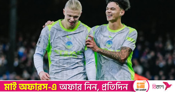 ঘরের মাঠ সেলহার্স্ট পার্কে আজকের ম্যাচে বেশ আত্মবিশ্বাসী ছিল ক্রিস্টাল প্যালেস। কিন্তু ম্যানচেস্টার সিটির আক্রমণাত্মক ফুটবলের সামনে সেই আত্মবিশ্বাস বেশিক্ষণ টেকেনি। ম্যানসিটির গোলমেশিন আর্লিং হালান্ড এদিনও ছিলেন স্বমহিমায়, আদায় করে নিয়েছেন জোড়া গোল। অন্য গোলটি করেছেন ইংলিশ তারকা ফিল ফোডেন।