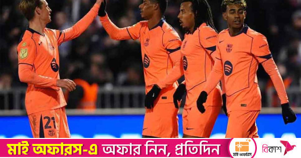 পজিশন ও আক্রমণে একচেটিয়া আধিপত্য করেও গোলের দেখা পাচ্ছিল না বার্সেলোনা। তবে শেষ পর্যন্ত জয়ের ধারা ধরে রেখে কোপা দেল রের শেষ ষোলোয় উঠল হান্সি ফ্লিকের দল।