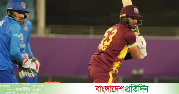 দুবাইয়ে টস হেরে বৃহস্পতিবার ব্যাট করতে নেমে পাওয়ার প্লেতে জনসন চার্লসকে হারায় ওয়েস্ট ইন্ডিজ। অধিনায়ক ব্রেন্ডন কিং এক প্রান্ত আগলে রাখলেও আরেক প্রান্তে তাকে খুব একটা সঙ্গ দিতে পারেননি কেসি কার্টি ও জাস্টিন গ্রেভস। ষোড়শ ওভারে কিং ও শিমরন হেটমায়ারকে ফিরিয়ে সাবেক বিশ্ব চ্যাম্পিয়নদের বড় ধাক্কা দেন রাশিদ খান। ৩৫ বলে তিন ছক্কা ও দুই চারে ৪৭ রান করেন কিং। দুই ছক্কায় ৬ বলে ১৩ রান করে থামেন হেটমায়ার। শেষ দিকে ১১ বলে দুটি করে ছক্কা ও চারে ২৭ রানের দারুণ ক্যামিও ইনিংস উপহার দেন ম্যাথু ফোর্ড। ৯ বলে তিন চারে অপরাজিত ১৬ রান করেন স্প্রিঙ্গার। তাদের ব্যাটে লড়াইয়ের পুঁজি পায় ওয়েস্ট ইন্ডিজ।