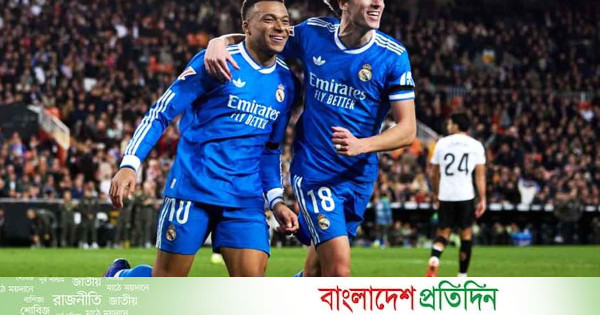 শেষ পর্যন্ত অপেক্ষা করালেও ভ্যালেন্সিয়ার বিপক্ষে গুরুত্বপূর্ণ জয় তুলে নিয়েছে রিয়াল মাদ্রিদ। প্রতিপক্ষের ঘরের মাঠ মেস্তায়া স্টেডিয়ামে লা লিগার ম্যাচে আতিথেয়তা নেয় রিয়াল। যেখানে আলভারো কারেরাস ও কিলিয়ান এমবাপের গোলে ২-০ ব্যবধানে জয় পেয়েছে লস ব্ল্যাঙ্কোসরা।