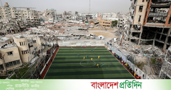 দুই বছরের বেশি সময় পর গাজা উপত্যকায় আবারও মাঠে গড়াল সংগঠিত ফুটবল টুর্নামেন্ট। চারপাশে ধ্বংসপ্রাপ্ত ভবন, ভাঙা দেয়াল আর স্তূপ হয়ে থাকা ইট-পাথরের মাঝেই অনুষ্ঠিত হলো ম্যাচ।