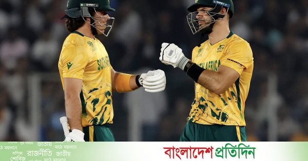 টি-টোয়েন্টি বিশ্বকাপে ডি গ্রুপের ম্যাচে দক্ষিণ আফ্রিকা ৭ উইকেটে জয় পেয়ে সুপার এইটের দুয়ারে পৌঁছে গেছে। আহমেদাবাদে শনিবার অনুষ্ঠিত ম্যাচে তারা ১৭৬ রানের লক্ষ্য ১৭ বল বাকি থাকতেই পূর্ণ করেছে।