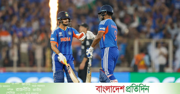 এরপর সঞ্জু স্যামসন ও ইশান কিষানের জুটিতে রান তোলার গতি আরও বাড়ে। মাত্র ১৫ ওভারেই ২০০ রানের মাইলফলক ছুঁয়ে ফেলে ভারত। স্যামসন টানা তৃতীয় ম্যাচে সেঞ্চুরির সম্ভাবনা জাগালেও শেষ পর্যন্ত তা পূরণ হয়নি। ৫ চার ও ৮ ছক্কায় ৪৬ বলে ৮৯ রান করে তিনি আউট হন।