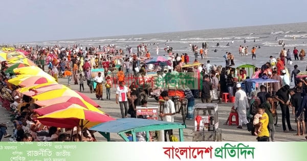 পর্যটকদের পদচারণায় মুখরিত কুয়াকাটা সৈকত